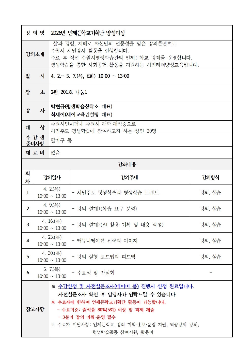 | 수강료 | 무료 |