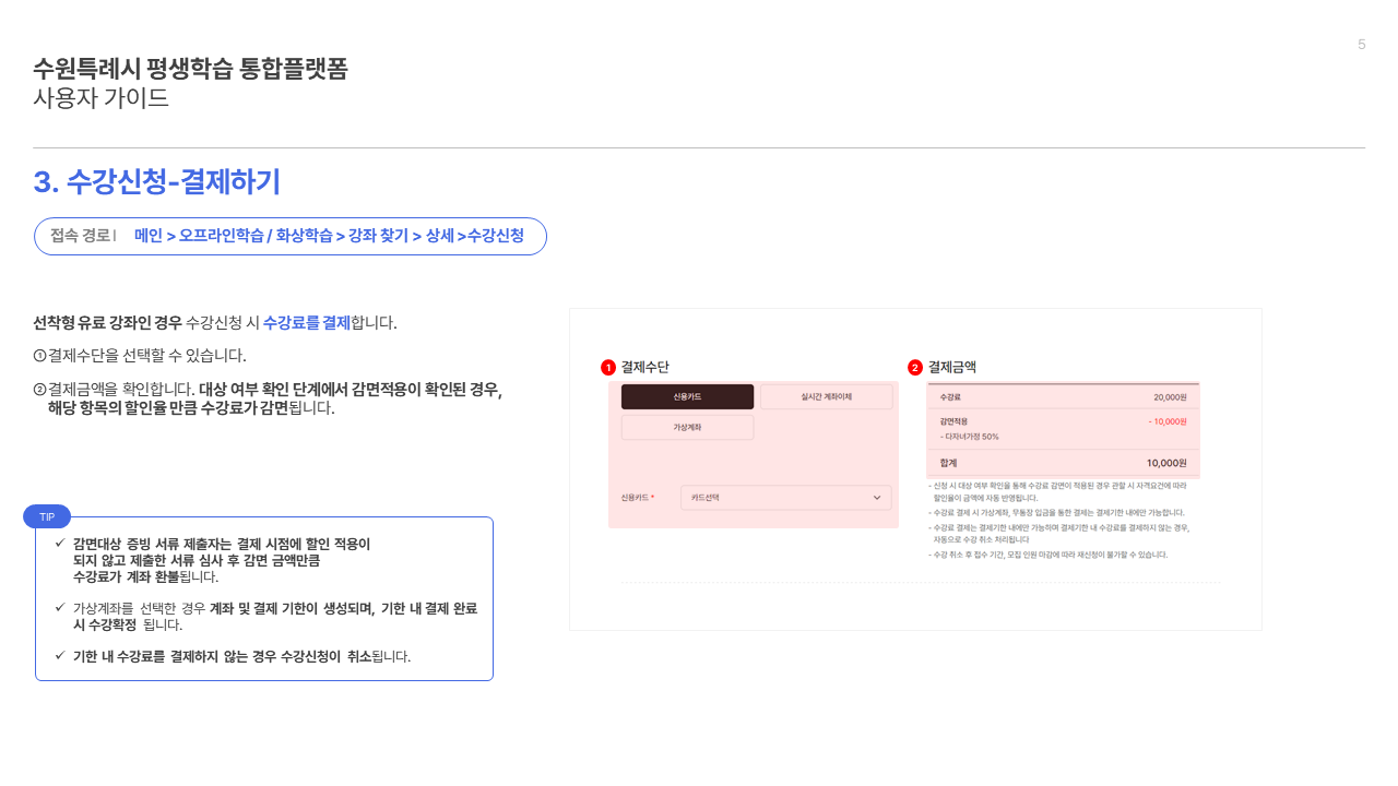 오프라인·화상학습 수강신청 및 결제 방법